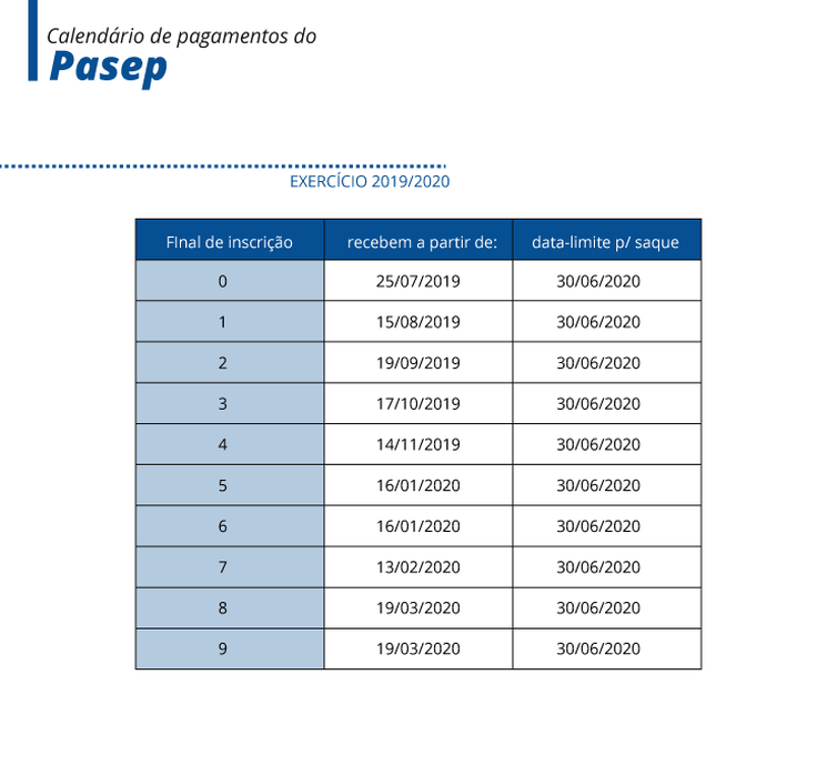 Para os funcionários públicos, a referência para definir a data do pagamento é o dígito final do número de inscrição do Pasep.